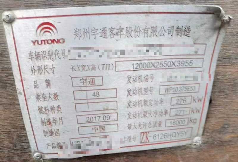| 客车品牌 | 宇通客车 | 上牌时间 | 2017-09-13 |
