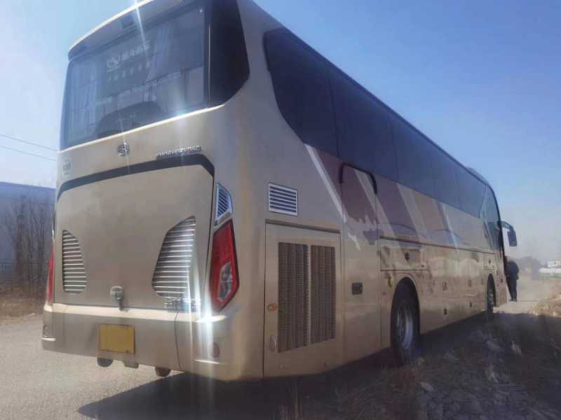 仅此一台抢手货54座国五旅游车2017年8月上牌金龙6119型一层半客车,后开门超大行李舱,气囊车,WP10潍柴336机头,一手旅游车,司机卧铺,木纹地板,底盘升降,点歌机,车载冰箱,上移底箱,公里数少,双档齐全,