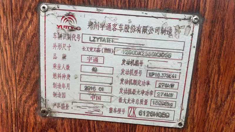 | 客车品牌 | 宇通客车 | 上牌时间 | 2016-01-06 |