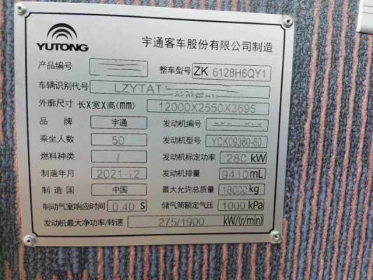 | 客车品牌 | 宇通客车 | 上牌时间 | 2021-08-17 |