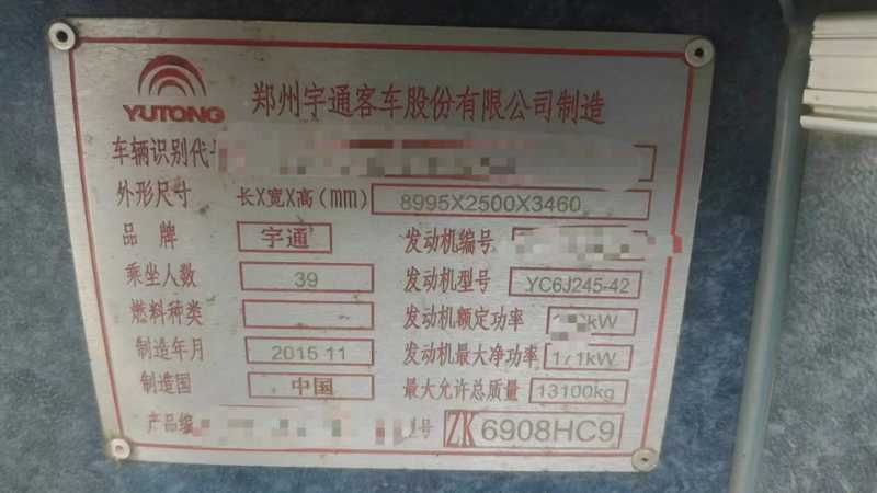 | 客车品牌 | 宇通客车 | 上牌时间 | 2015-12-30 |