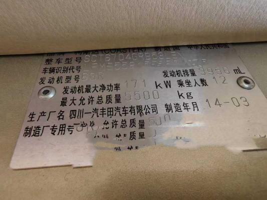 粤A牌国四豪华版考斯特12座,2014年3月上牌,,6GR4.0汽油机,冰箱,办公桌,真皮座椅,第一个座椅可旋转,天窗,原厂外摆门,封闭窗,送一年交强险,刚刚年审.
