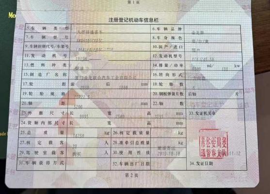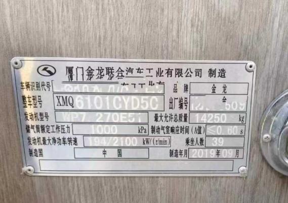 | 客车品牌 | 金龙客车 | 上牌时间 | 2019-11-13 |