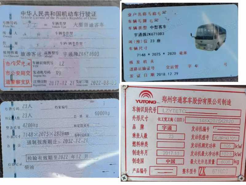 | 客车品牌 | 宇通客车 | 上牌时间 | 2017-12-21 |