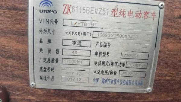 2017年12月宇通6115EV型新能源48座同款多台,宁德时代143度电池,一手车,非营运性质,电池加热口,车况完美,到手无投资,需要的抓紧.