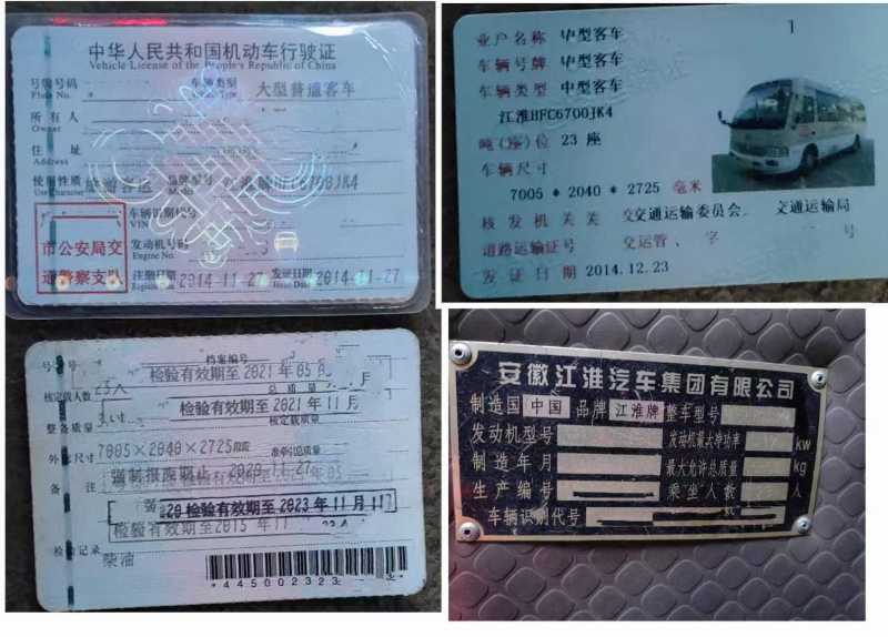 两台同款,2014年11月上牌,江淮保时通,23座,万国发动机,悬挂底盘,油刹,前碟后鼓,旅游客运性质,可提营运转籍单。