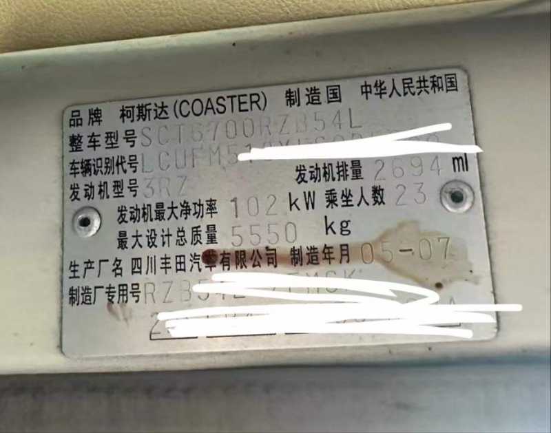 | 客车品牌 | 柯斯达客车 | 上牌时间 | 2005-07-28 |