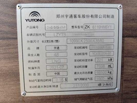| 客车品牌 | 宇通客车 | 上牌时间 | 2021-10-27 |
