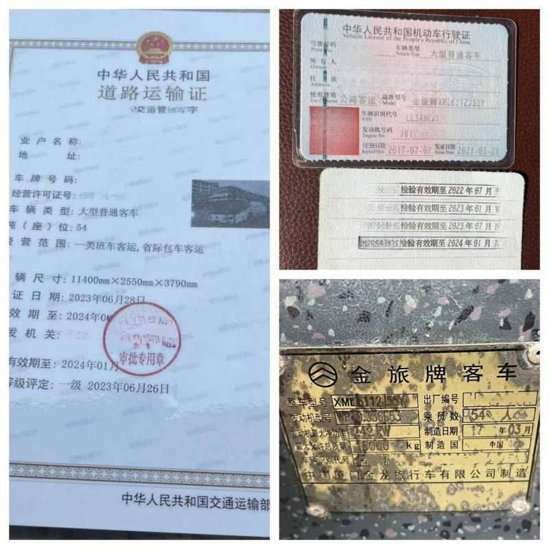 后开门国五54座金旅,2017年7月上牌,潍柴336机头,气囊车,司机卧铺,后开门,超大行李舱,轮胎新,座椅新,有暖气,定金留车
