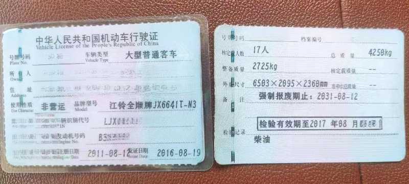| 客车品牌 | 江铃全顺 | 上牌时间 | 2011-08-16 |
