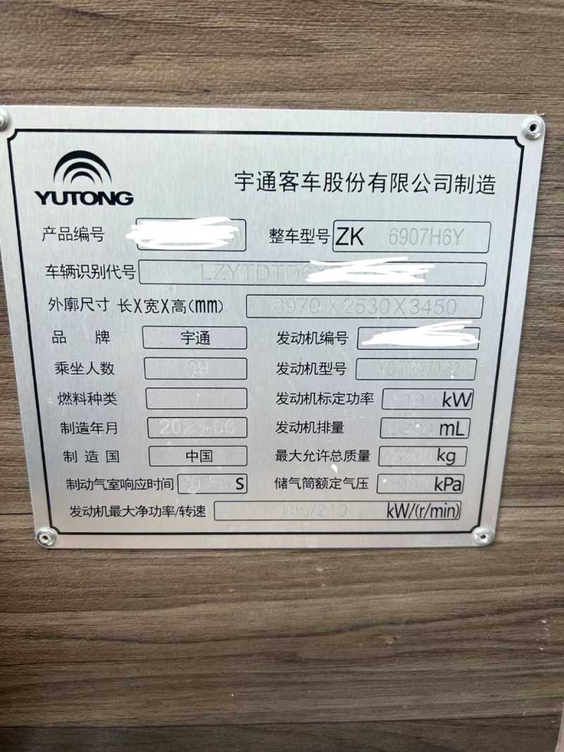 6个月准新39座宇通[色]2023年6月上牌宇通6907,气囊车,玉柴270发动机,国六排放,铝合金轮毂,安全门,四轮碟刹免维护,缓速器(电缓),6前进档,3万多公里,旅游客运性质,可提营运。