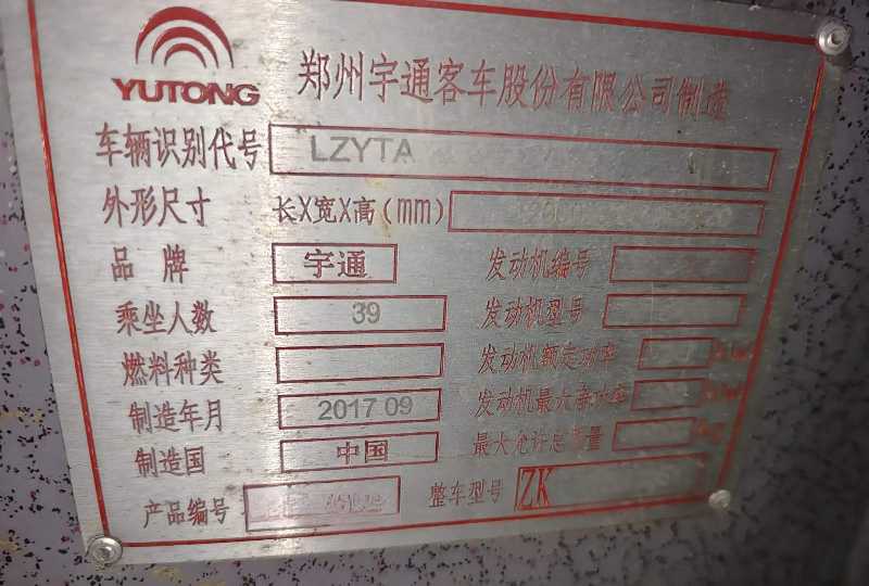 | 客车品牌 | 宇通客车 | 上牌时间 | 2017-10-18 |