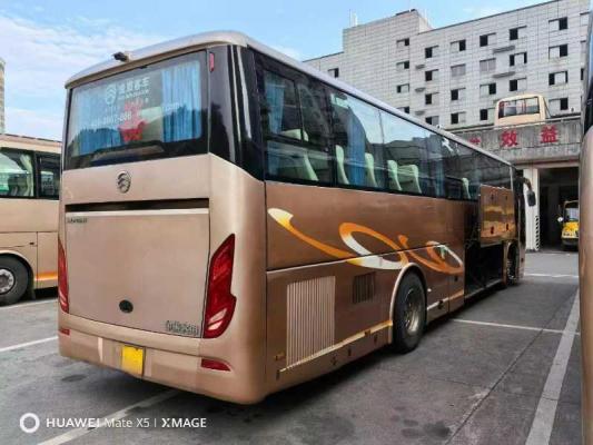 性价比极高国五50座一手旅游客车18 年 2 月上户厦门金旅 6122J15Y,50 座、国 5、玉柴 330-50,气囊悬挂、前碟后鼓、法士特变速箱、缓速器、暖风、空调、双开门、商务真皮座椅、电视、倒车影像、硬盘播放器、多功能方向盘、定速巡航、木纹地板--