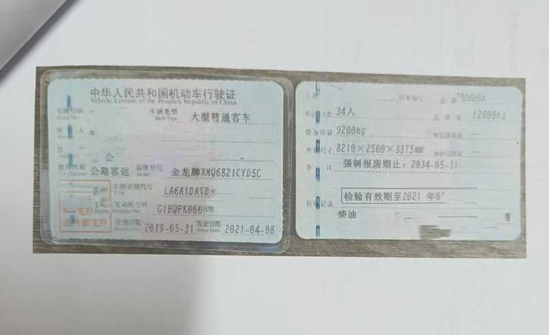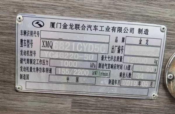 | 客车品牌 | 金龙客车 | 上牌时间 | 2019-05-21 |