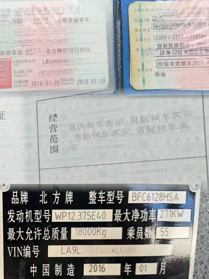 | 客车品牌 | 北方客车 | 上牌时间 | 2016-01-11 |