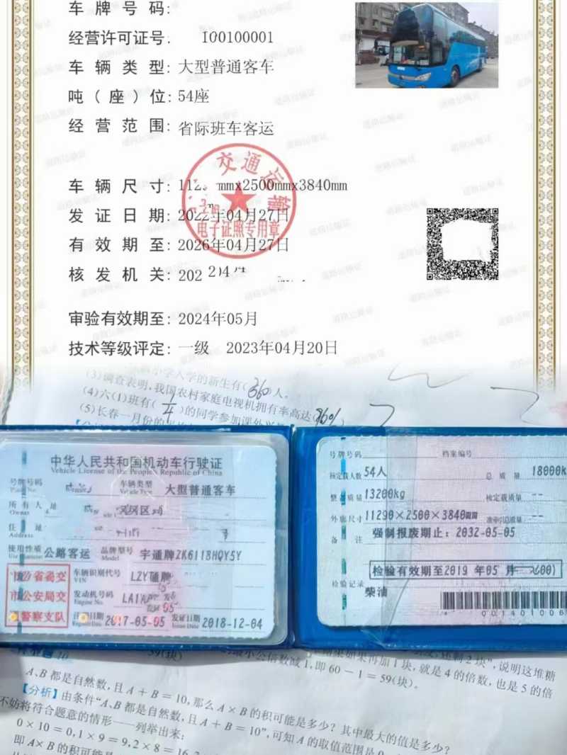 再来一台国五54座宇通[色]2017年5月上牌宇通6118,玉柴330国五机头,气囊减震,定速巡航,司机睡仓,有中门,车况精品,公路客运,可提营运.