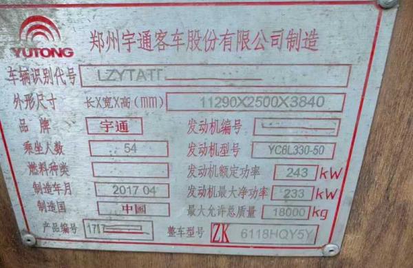 | 客车品牌 | 宇通客车 | 上牌时间 | 2017-05-16 |