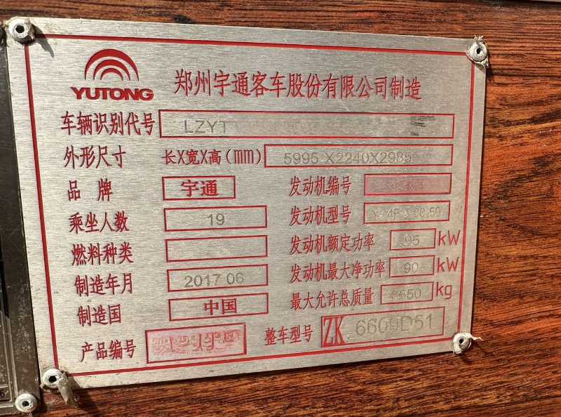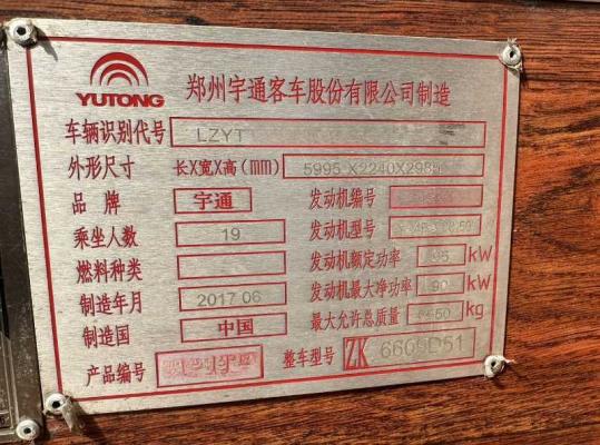 | 客车品牌 | 宇通客车 | 上牌时间 | 2017-07-12 |