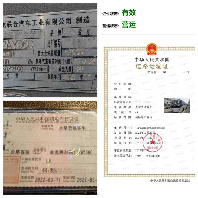 | 客车品牌 | 金龙客车 | 上牌时间 | 2022-04-29 |