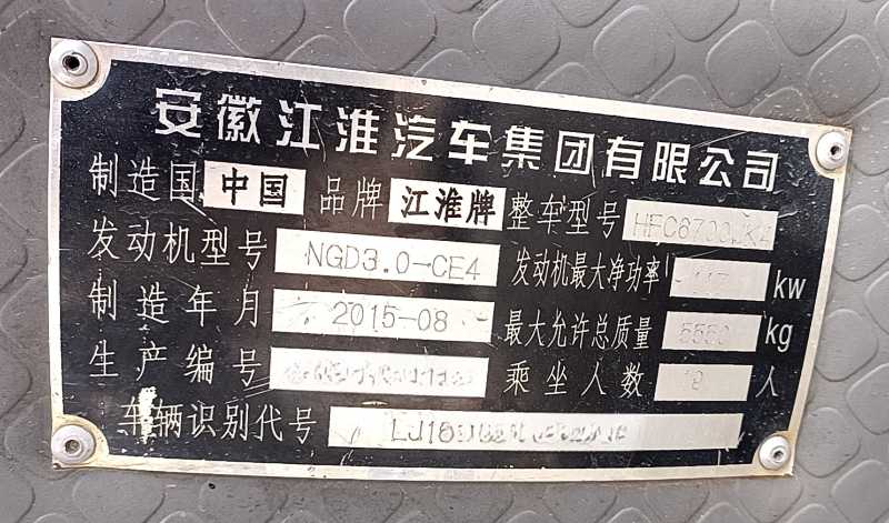 3.58万开走国四19座安凯营运中巴,2015年9月上牌江淮6700,朝柴机头,国四排放,公路客运,