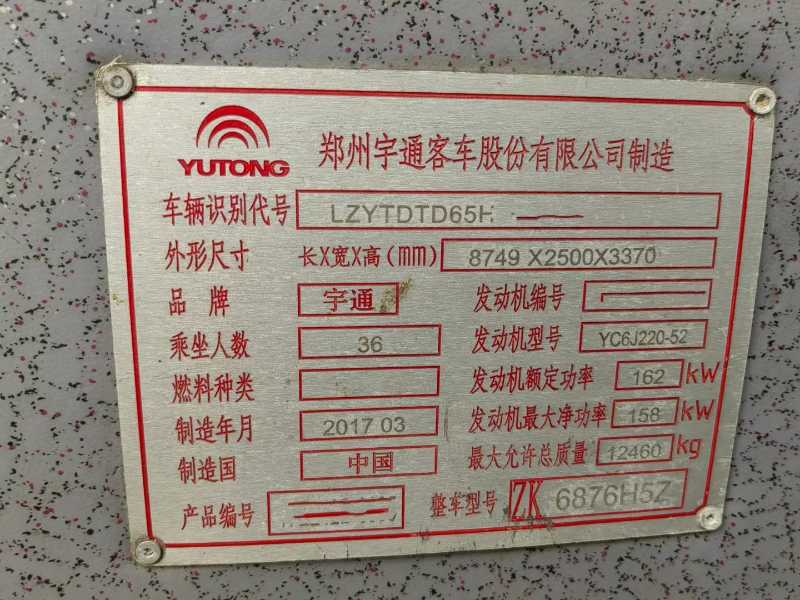| 客车品牌 | 宇通客车 | 上牌时间 | 2017-03-23 |