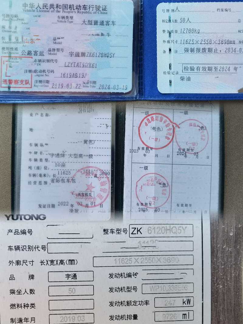 大高一公告有营运档案50座[色]2019年3月宇通6120型客车,潍柴336机头,气囊,中门,轮胎9成新,木纹地板,有暖气,刚做完年审,仅此一台。