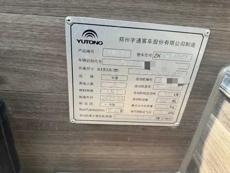 | 客车品牌 | 宇通客车 | 上牌时间 | 2021-05-18 |