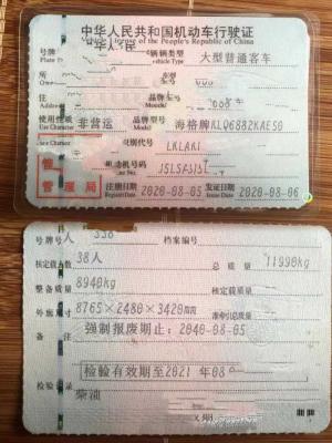 四川牌国五38座海格非营运,2020年8月上牌海格6882,玉柴6缸220机头,四轮碟刹、法士特变速箱、暖风空调,商务真皮座椅 ,带营运公告。