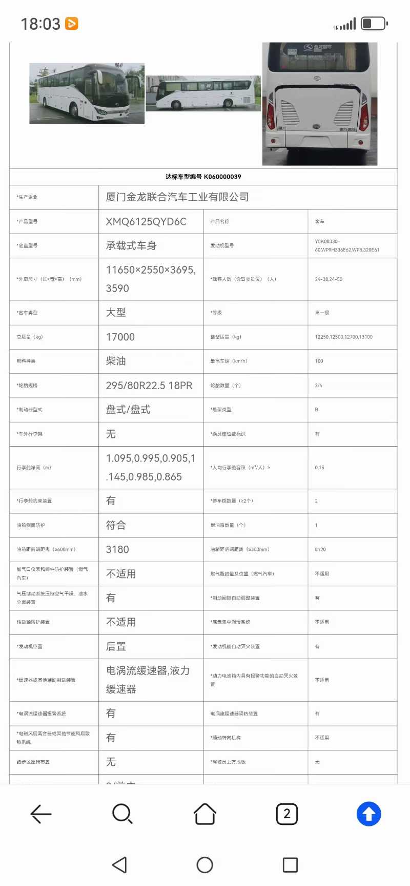 2023年4月 多台50座国六有公告准新大金龙6125气囊中