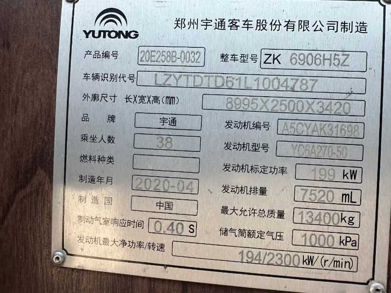 | 客车品牌 | 宇通客车 | 上牌时间 | 2020-05-19 |