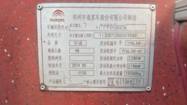 | 客车品牌 | 宇通客车 | 上牌时间 | 2014-06-19 |