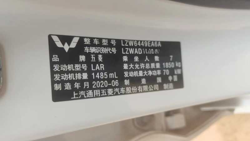 | 客车品牌 | 五菱客车 | 上牌时间 | 2020-08-18 |