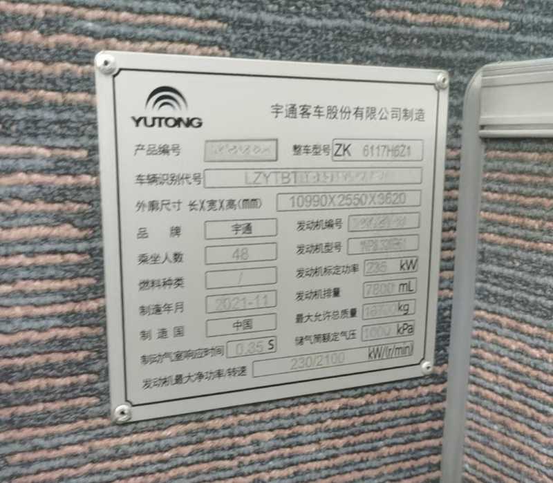 | 客车品牌 | 宇通客车 | 上牌时间 | 2022-04-26 |