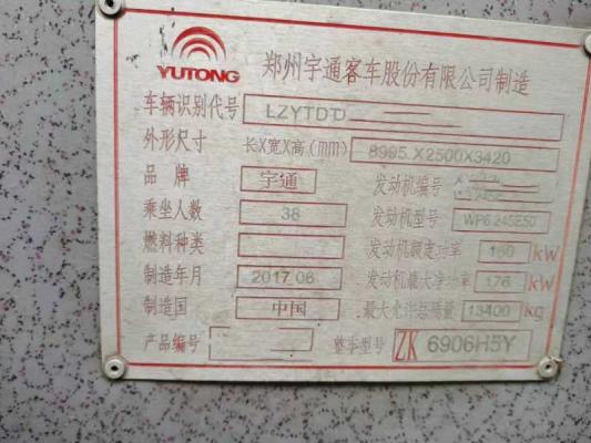 | 客车品牌 | 宇通客车 | 上牌时间 | 2017-06-22 |