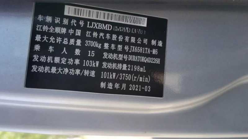 | 客车品牌 | 江铃全顺 | 上牌时间 | 2021-05-19 |