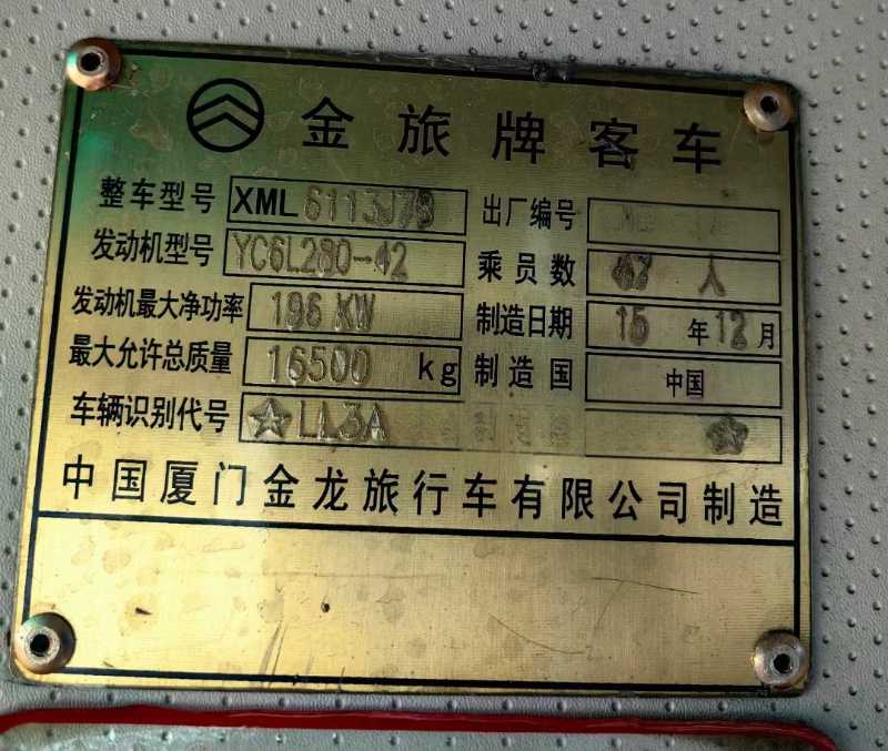 | 客车品牌 | 金旅客车 | 上牌时间 | 2015-12-23 |