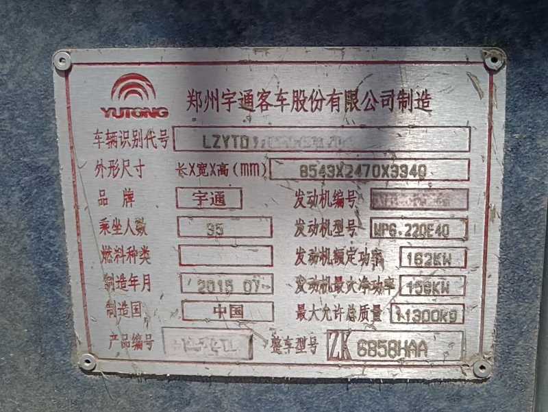 | 客车品牌 | 宇通客车 | 上牌时间 | 2015-07-14 |