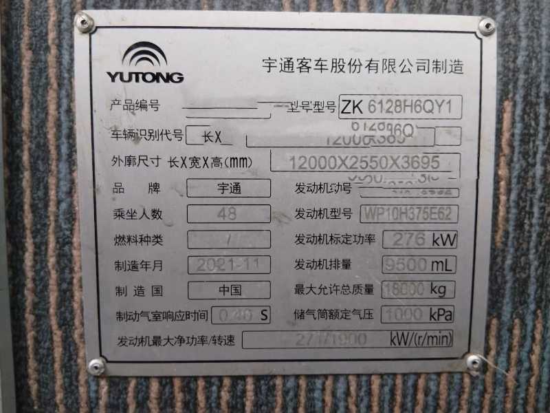 | 客车品牌 | 宇通客车 | 上牌时间 | 2021-12-08 |