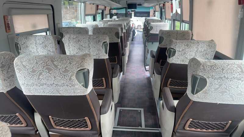 刚6个月准新2+1 型34座宇通保姆车,2024年1月上牌宇通 6117 气囊车气囊车有中门和安全门,有公告,司机独立驾驶室,新款小杆挂档杆,潍柴 320 国六 发动机,2+1 商务座椅,每个座椅都带 USB 充电插口, 四轮碟刹,定速巡航,上移行李舱,锅炉暖气,落地差不多60万!旅游客运市级省级包车,可提营运!同款两台.