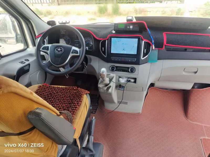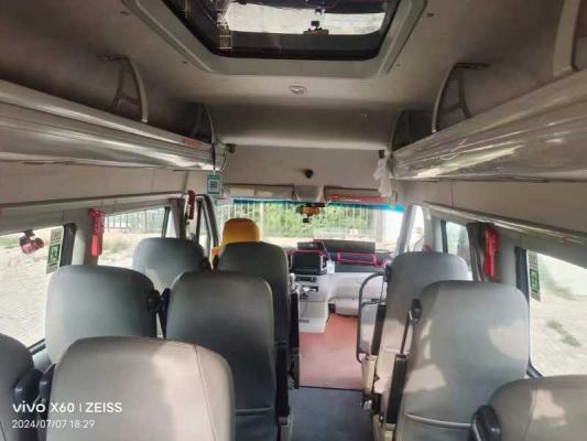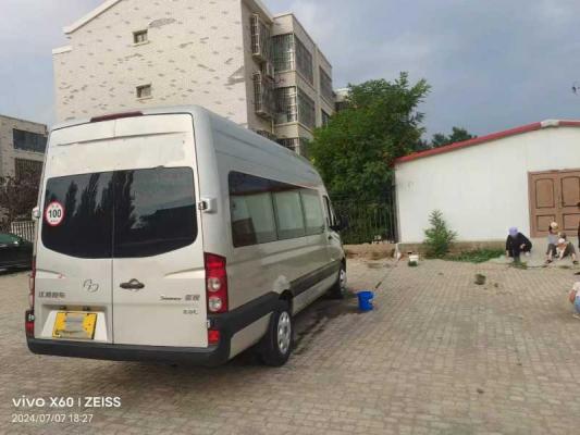 国六中型17座江淮营运车,2024年上牌6601型,手动柴油6个前进档,皮面座椅,行李架,天窗。