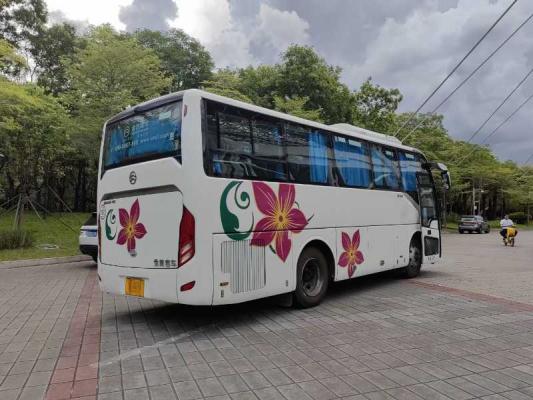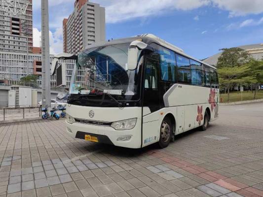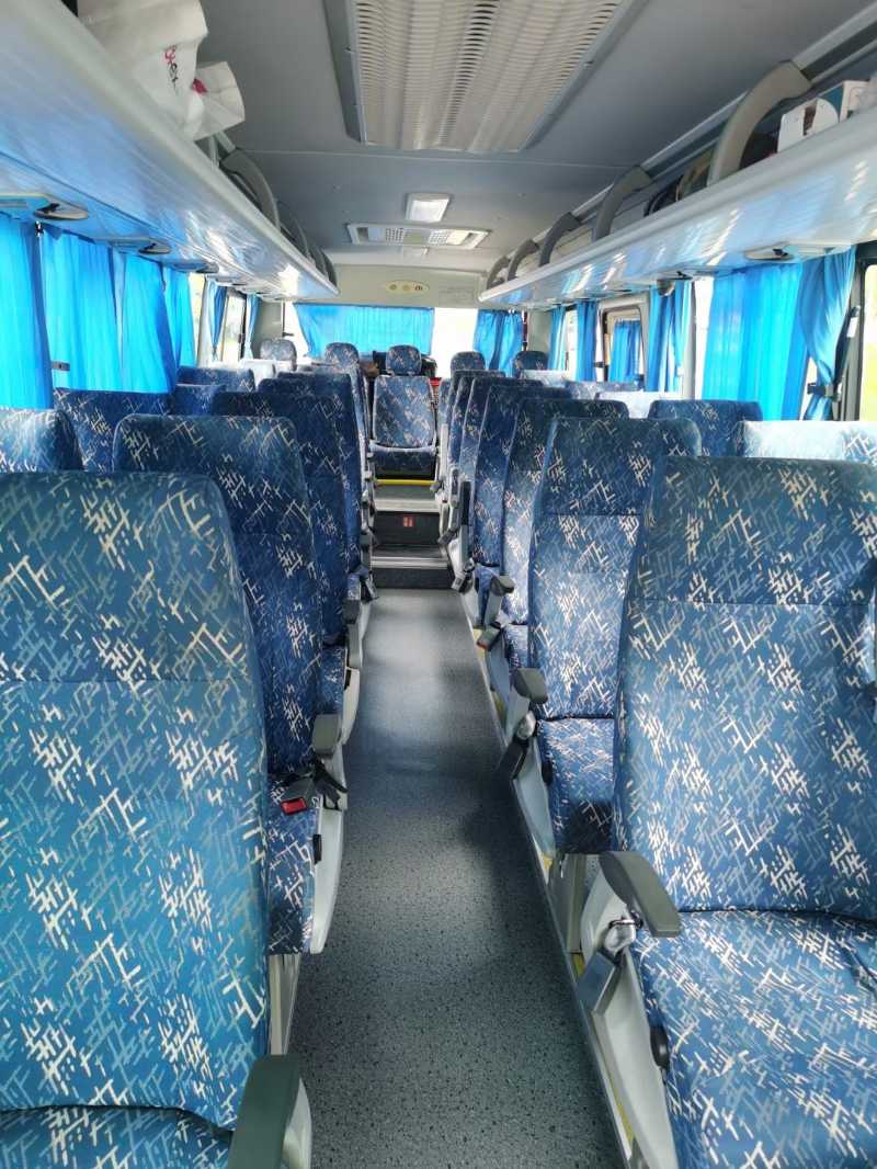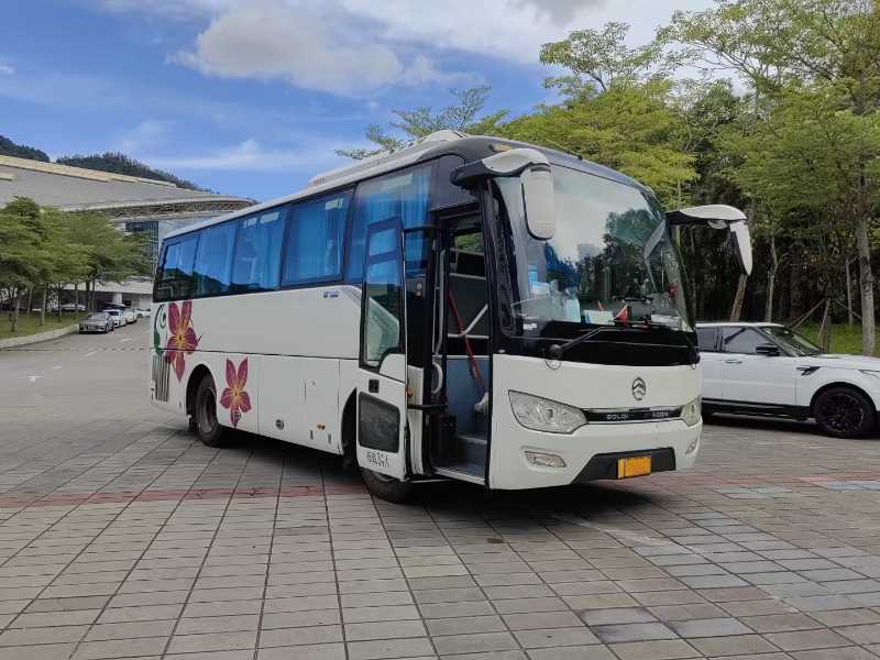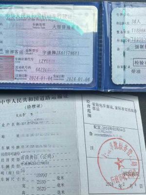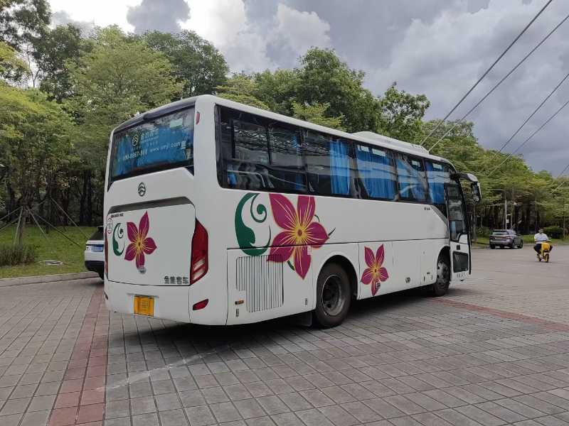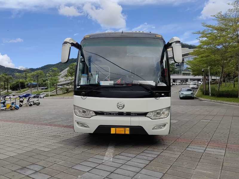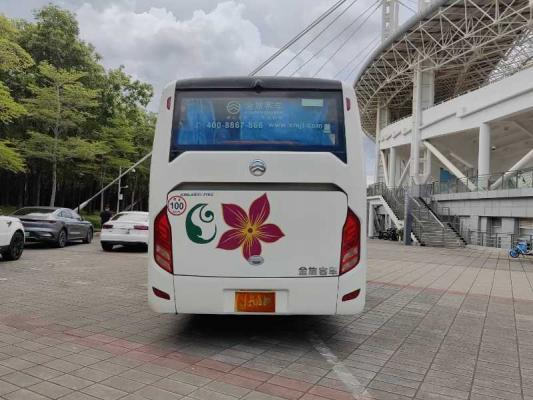 国六排放 34 座[色]2021 年 6 月上牌金旅 6827,钢板减震,潍柴 220 发动机,安全门,缓速器,行李架,通仓,前碟后鼓,旅游客运可提营运。
