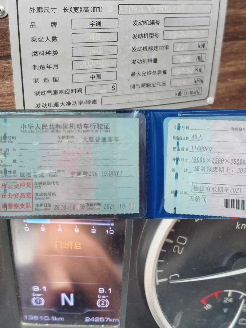 | 客车品牌 | 宇通客车 | 上牌时间 | 2020-10-09 |
