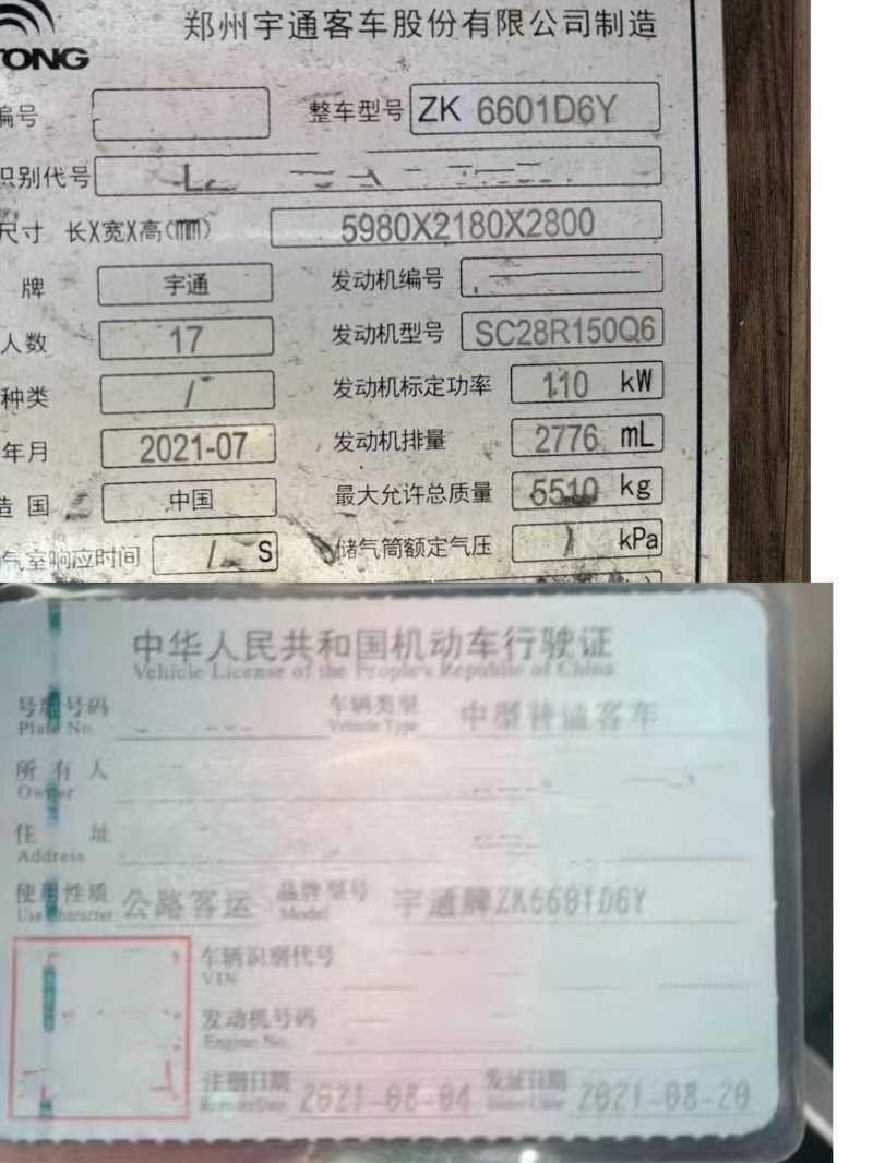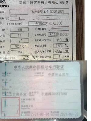 | 客车品牌 | 宇通客车 | 上牌时间 | 2021-08-17 |