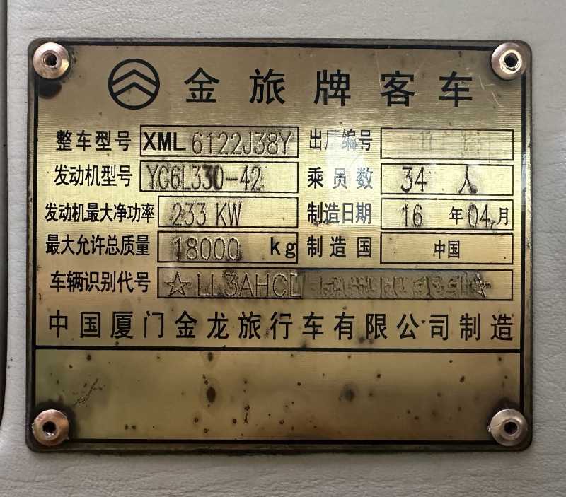 | 客车品牌 | 金旅客车 | 上牌时间 | 2016-05-05 |
