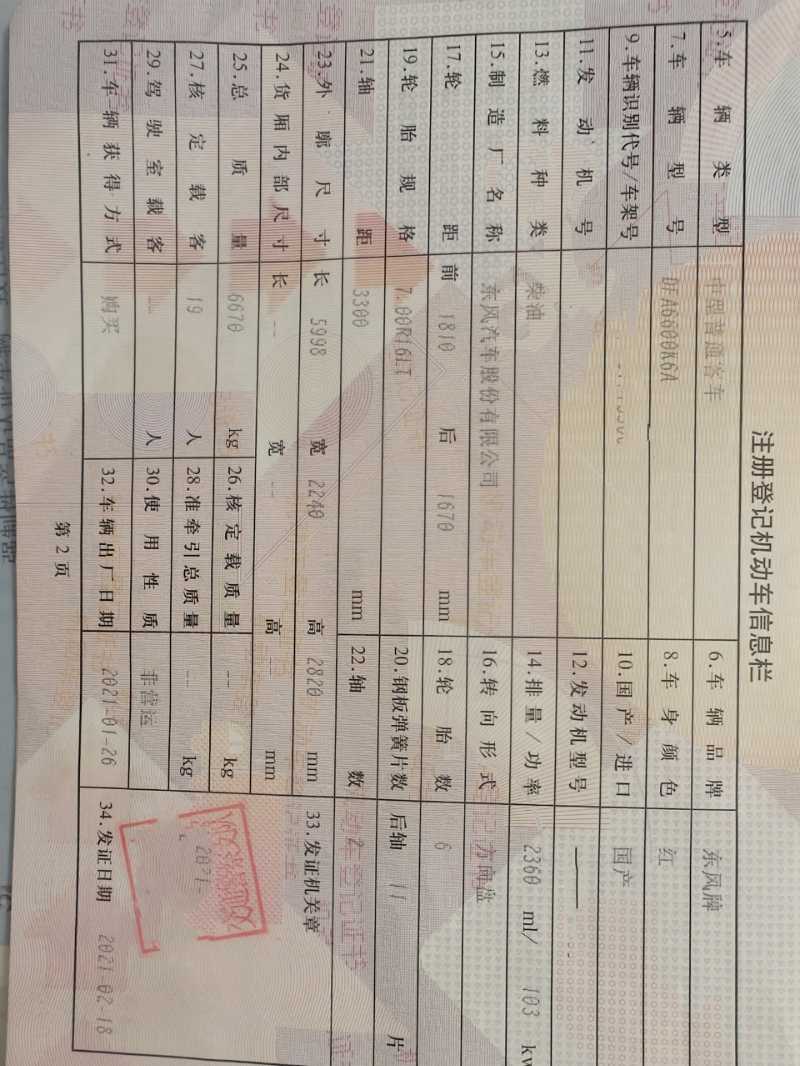 | 客车品牌 | 东风客车 | 上牌时间 | 2021-03-19 |