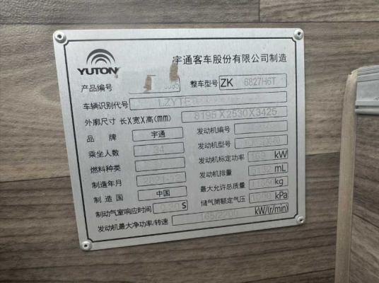 2022年上牌,34座国六宇通6827型客车,非营运性质,玉柴230机头,新车状态,统舱行李架,有缓速器,四轮碟刹,单位一手车,看车联系