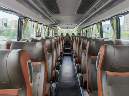 50座国六宇通6117非营运客车,玉柴310发动机,2020年下旬上牌,气囊减震,缓速器,行李架,大通仓,单位一手车,木纹地板,高端包裹式皮革座椅,前中双门,极品车况。