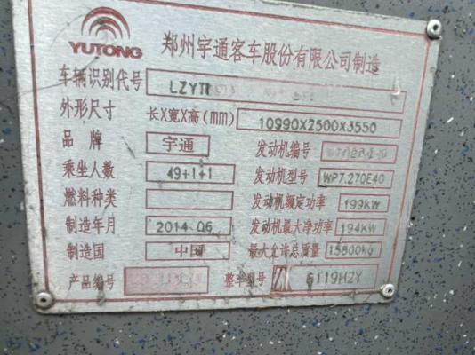 | 客车品牌 | 宇通客车 | 上牌时间 | 2014-07-21 |
