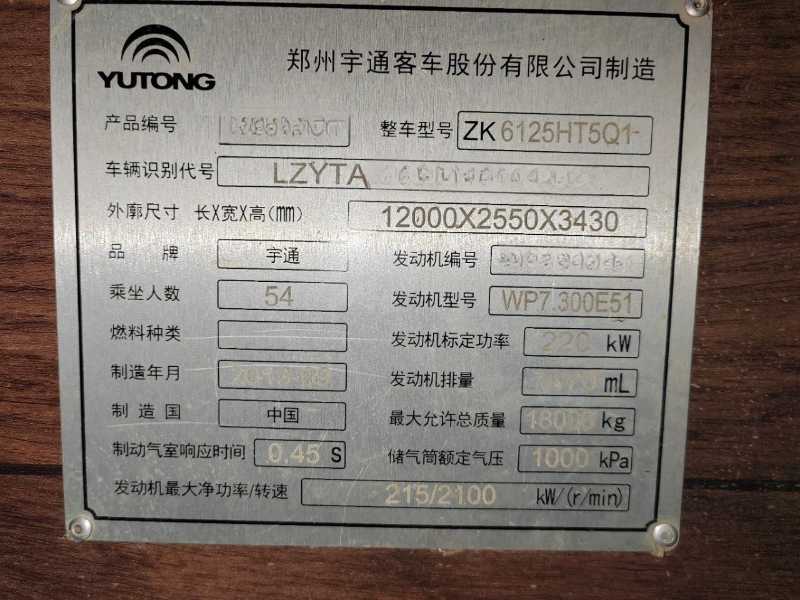 | 客车品牌 | 宇通客车 | 上牌时间 | 2019-09-18 |