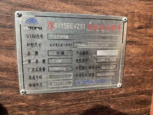 | 客车品牌 | 宇通客车 | 上牌时间 | 2017-12-14 |